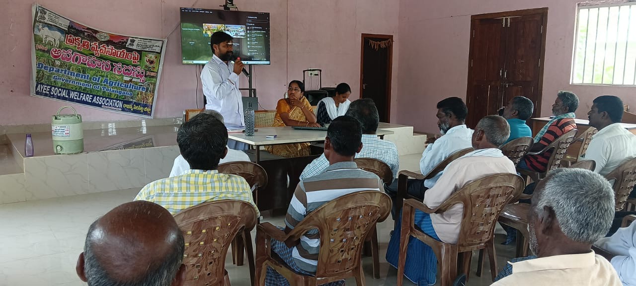 రాజన్న సిరిసిల్ల జిల్లా బోయినిపల్లి మండలం లో ఈ రోజు జాతీయ ప్రకృతి వ్యవసాయ పథకం పైన విలసాగర్ క్లస్టర్ లోని రైతులకి శిక్షణ కార్యక్రమాన్ని నిర్వహించడం జరిగింది.బోయినిపల్లి మండలం లో ఈ పథకం క్రింద విలసాగర్ గ్రామంలోని 125 మంది రైతులను గుర్తించి వారికి శిక్షణ నిర్వహించారు.ముఖ్యంగా ప్రకృతి వ్యవసాయ పద్ధతుల ద్వారా వివిధ పంటల్లో దిగుబడులు సాధిస్తూ విషరహితమైనటువంటి రసాయన రహిత పద్ధతుల ద్వారా పంటల దిగుబడి పొందేందుకు ఈ శిక్షణ ఉపయోగపడుతుంది ముఖ్యంగా ప్రకృతి వ్యవసాయం చేసే రైతులకు, ప్రకృతి వ్యవసాయంపై పనిచేస్తున్న ఏవైఈఈ స్వచ్ఛంద సంస్థ స్థాపకుడు శ్రీకాంత్, రైతులకు శిక్షణ ఇచ్చారు. ఆయన మాట్లాడుతూ ప్రస్తుత వాతావరణ పరిస్థితుల్లో, రసాయన/ క్రిమిసంహారక మందులు వాడకుండా పంటలను పండించడం వల్ల పెట్టుబడి తగ్గించుకుని, నాణ్యమైన దిగుబడి సాధించి, మన ఆరోగ్యాన్ని కాపాడుకోవాలి. దీని కొరకు ఒక దేశీ ఆవు ఉంటే చాలునని, జీవామృతం, భీజమృతం మొదలగునవి తయారు చేసుకొని, రసాయన ఎరువులు వాడకుండా పంటలు పండించుకోవాలని సూచించారు.ఈ కార్యక్రమంలో మండల వ్యవసాయ అధికారిని ప్రణీత, ఏఈఓ రజిత పాల్గొన్నారు.