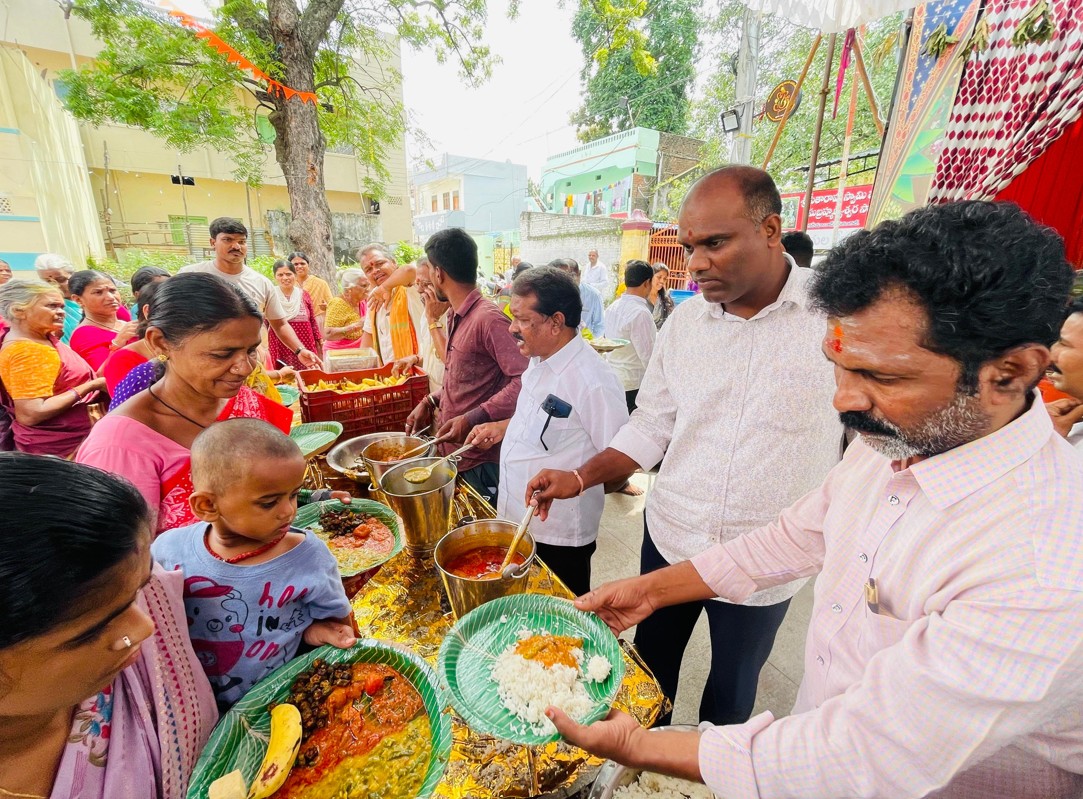 గురువారం శ్రీ నవ యువ చైతన్య యూత్ అసోసియేషన్ కమిటీ సభ్యులు పలువురు దాతల సహకారంతో మహా అన్నదాన కార్యక్రమాన్ని ఘనంగా నిర్వహించారు.కాగా సుమారు 1500 మందికి అన్నదానం చేయడం విశేషం.