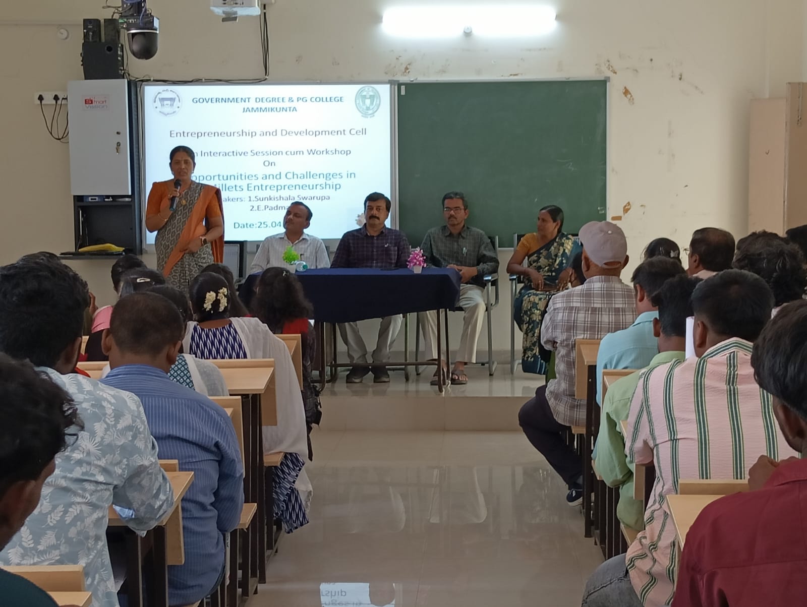జమ్మికుంట ప్రభుత్వ డిగ్రీ, పీజీ కళాశాలలో శుక్రవారం వ్యవస్థాపక, అభివృద్ధి విభాగం ఆధ్వర్యంలో ఏర్పాటుచేసిన సమావేశంలో డాక్టర్ బి రమేష్ మాట్లాడుతూ మిల్లెట్స్ వ్యాపారంలో యువతకు అపార అవకాశాలు కలవని తెలిపారు.