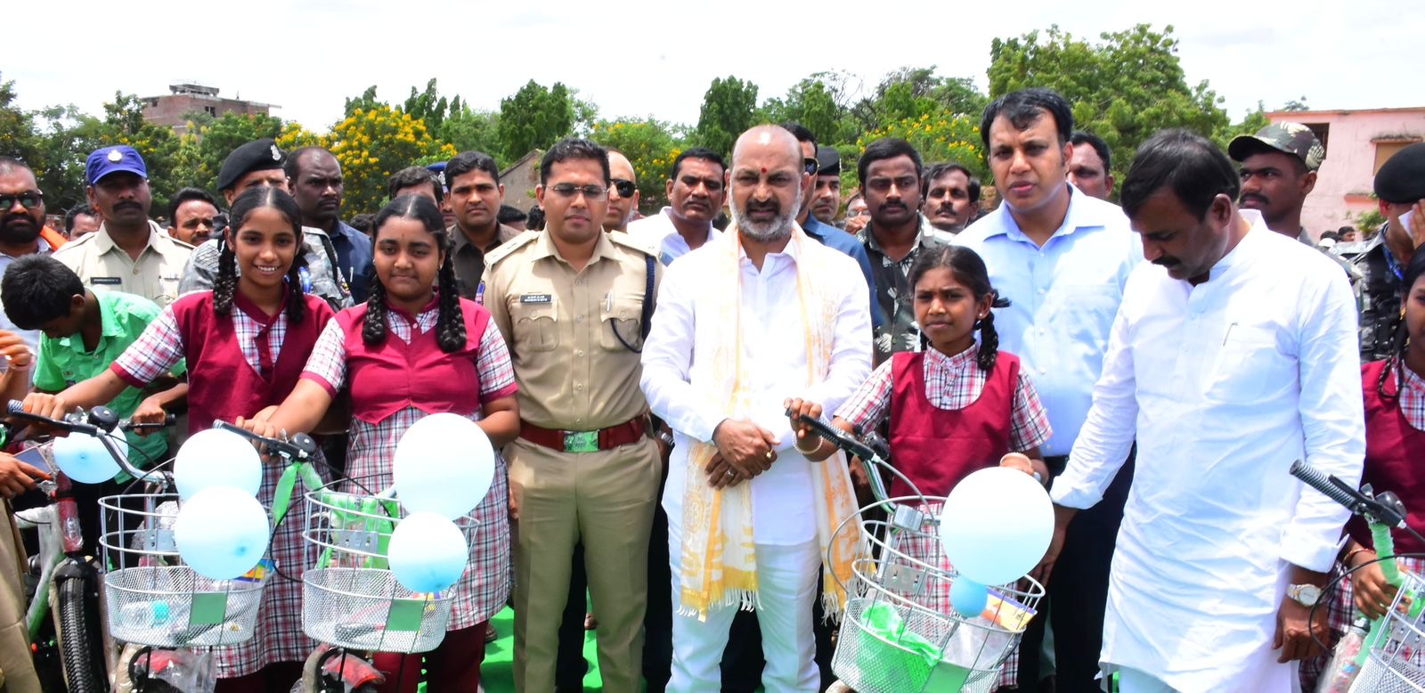 సిరిసిల్ల పట్టణంలో జూనియర్ కళాశాల మైదానంలో 10వ తరగతి పిల్లలకు సైకిల్ పంపిణీ చేసిన కేంద్ర హోంశాఖ సహాయ మంత్రి వర్యులు బండి సంజయ్ విద్యార్థులు ఉన్నత లక్ష్యాల సాధనకు కృషి చేయాలని కేంద్ర హోంశాఖ సహాయ మంత్రి వర్యులు బండి సంజయ్ అన్నారు. మంగళవారం సిరిసిల్ల పట్టణంలో జూనియర్ కళాశాల మైదానంలో 10వ తరగతి పిల్లలకు కేంద్ర హోంశాఖ సహాయ మంత్రి వర్యులు బండి సంజయ్ జిల్లా కలెక్టర్ సందీప్ కుమార్ ఝ, ఎస్పీ మహేష్ బి గీతే, ఎమ్మెల్సీ అంజి రెడ్డిలతో కలిసి సైకిళ్ళు పంపిణీ చేశారు.కేంద్ర హోంశాఖ సహాయ మంత్రి వర్యులు బండి సంజయ్ మాట్లాడుతూ, విద్యా, వైద్యం రూపంలో రాజకీయాల కతీతంగా ప్రతి ఒక్కరికి సహాయం అందించాలని ప్రధాన మంత్రి నరేంద్ర మోడీ పిలుపు మేరకు మోడీ గిఫ్ట్ పేరిట 10వ తరగతి చదివే బాల బాలికలకు ఉచితంగా సైకిల్ అందిస్తున్నామని అన్నారు.