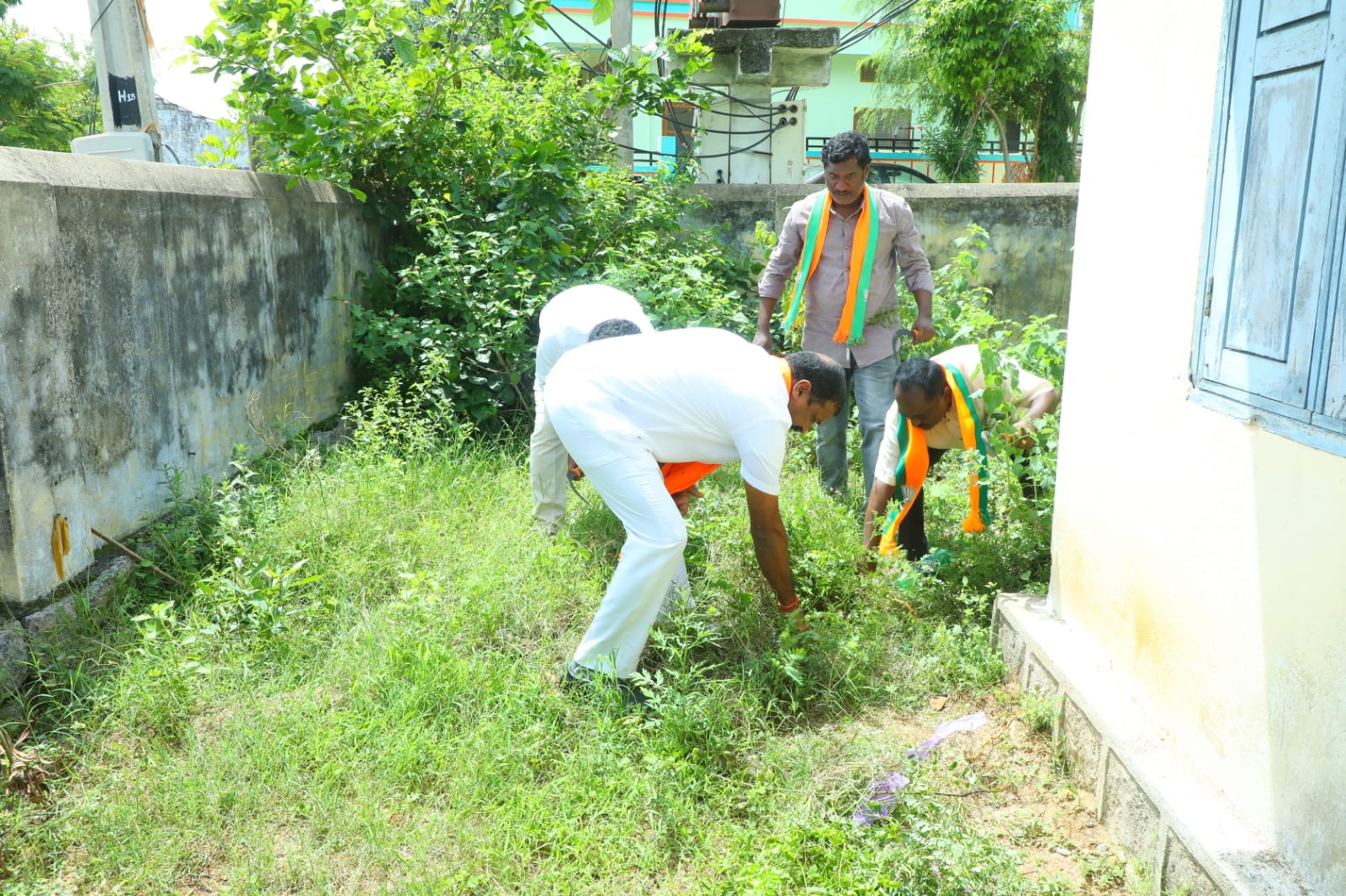 – చెత్త, పిచ్చి మొక్కలను తొలగించి ఆఫీసును నీట్గా చేసిన నాయకులు