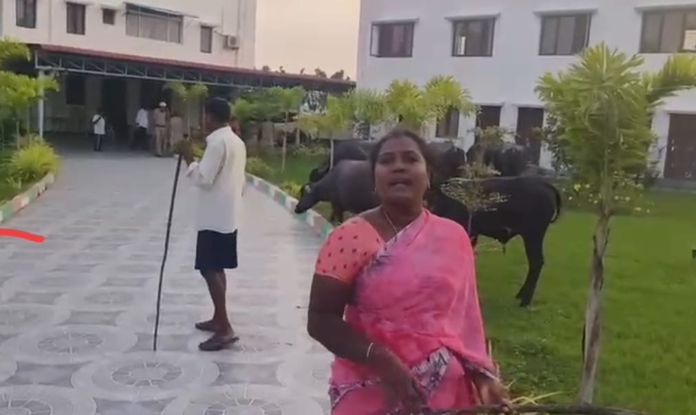 అధికారులు తమ గేదెల షెడ్డును కూల్చివేసినందుకు బాధితులు వినూత్న నిరసన తెలిపారు. ఏకంగా అధికార పార్టీ శాసన సభ్యుడి క్యాంప్ ఆఫీసులోనికే తమ గేదెలను తీసుకెళ్లడం గమనార్హం. బాధితురాలి వివరాల ప్రకారం..జయశంకర్ భూపాలపల్లి జిల్లా వేషాలపల్లి గ్రామంలోని తమ బర్ల షెడ్డును అధికారులు కూల్చేశారని, దాంతోనే తాము ఎమ్మెల్యే కార్యాలయానికి గేదెలతో వచ్చి నిరసన తెలిపామని రైతు దంపతులు కూరాకుల ఓదెలు, లలిత పేర్కొన్నారు.