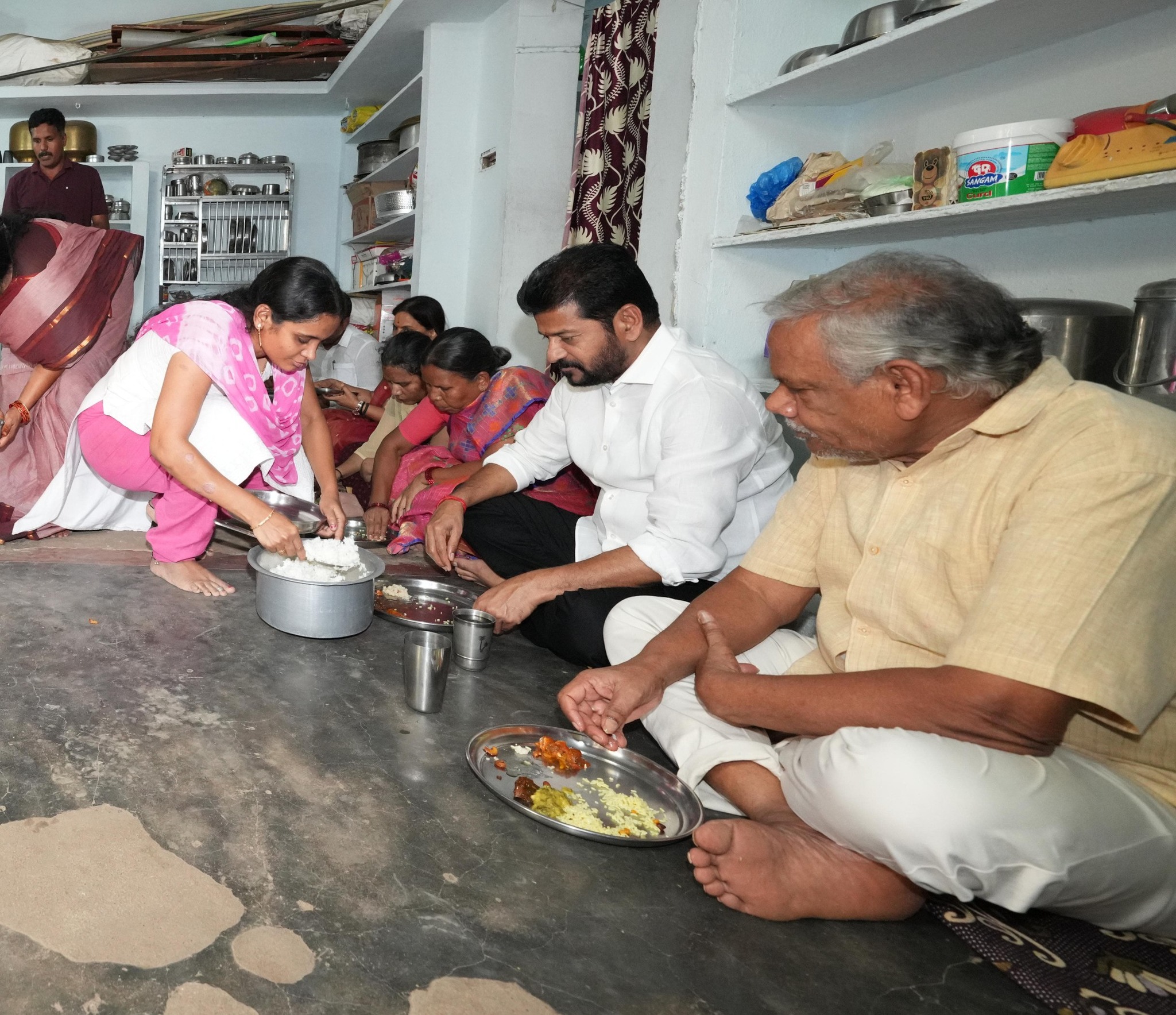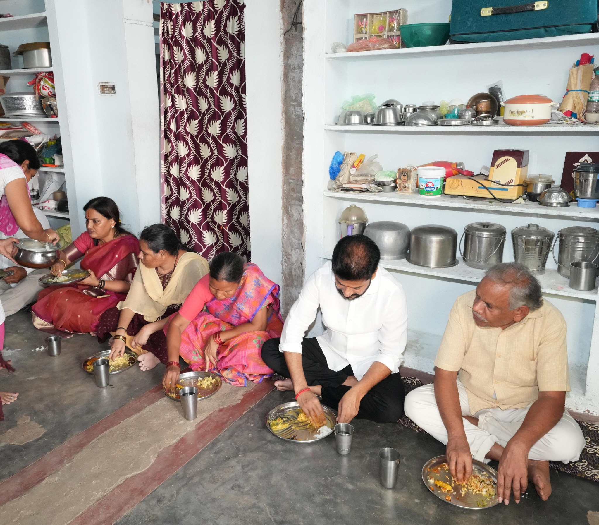 ఆ తర్వాత డిప్యూటీ సీఎం భట్టీ విక్రమార్క మల్లు, మంత్రులు పొంగులేటి శ్రీనివాస్ రెడ్డి, తుమ్మల నాగేశ్వరరావు, పినపాక ఎమ్మెల్యే పాయం వెంకటేశ్వరావు తో కల్సి సన్నబియ్య లబ్ధిదారుడైన సారపాకకు చెందిన బూర ం శ్రీనివాస్ ఇంట్లో సహాపంక్తి భోజనం లో పాల్గోన్నారు.