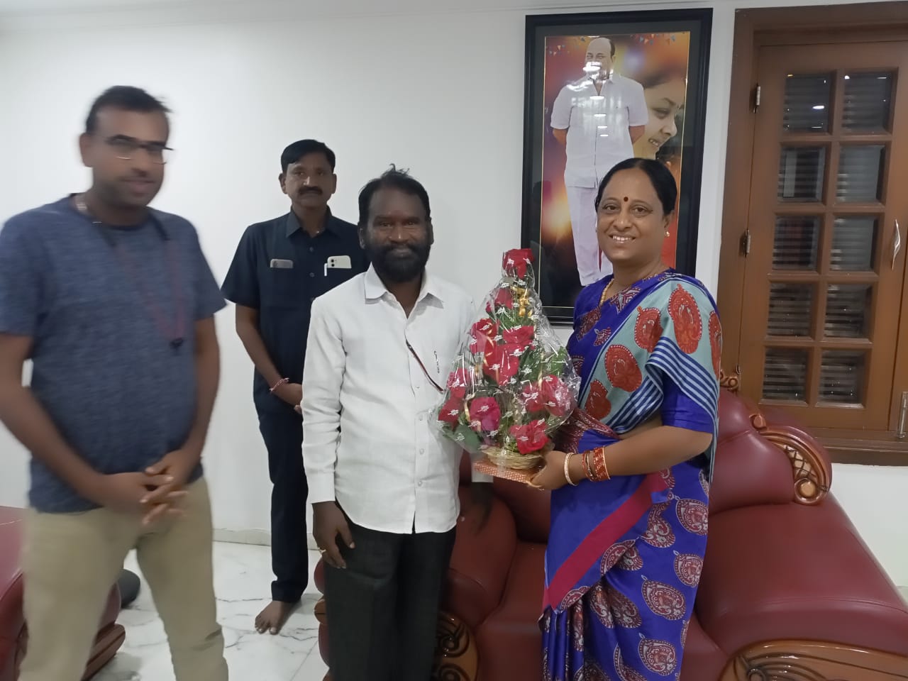 అటవీ, దేవదాయ శాఖ మంత్రి కొండా సురేఖను కాంగ్రెస్ పార్టీ వరంగల్ జిల్లా ప్రధాన కార్యదర్శి దాసి రాందేవ్ మర్యాదపూర్వకంగా కలిశారు. హైదరాబాద్ సెక్రెటేరియట్ లో మంత్రి సురేఖను ఆమె చాంబర్ లో మంత్రిగా బాధ్యతలు స్వీకరించిన అనంతరం నాయకులు రాందేవ్ సోమవారం కలిసి..పుష్పగుచ్ఛం అందించి శుభాకాంక్షలు చెప్పారు.