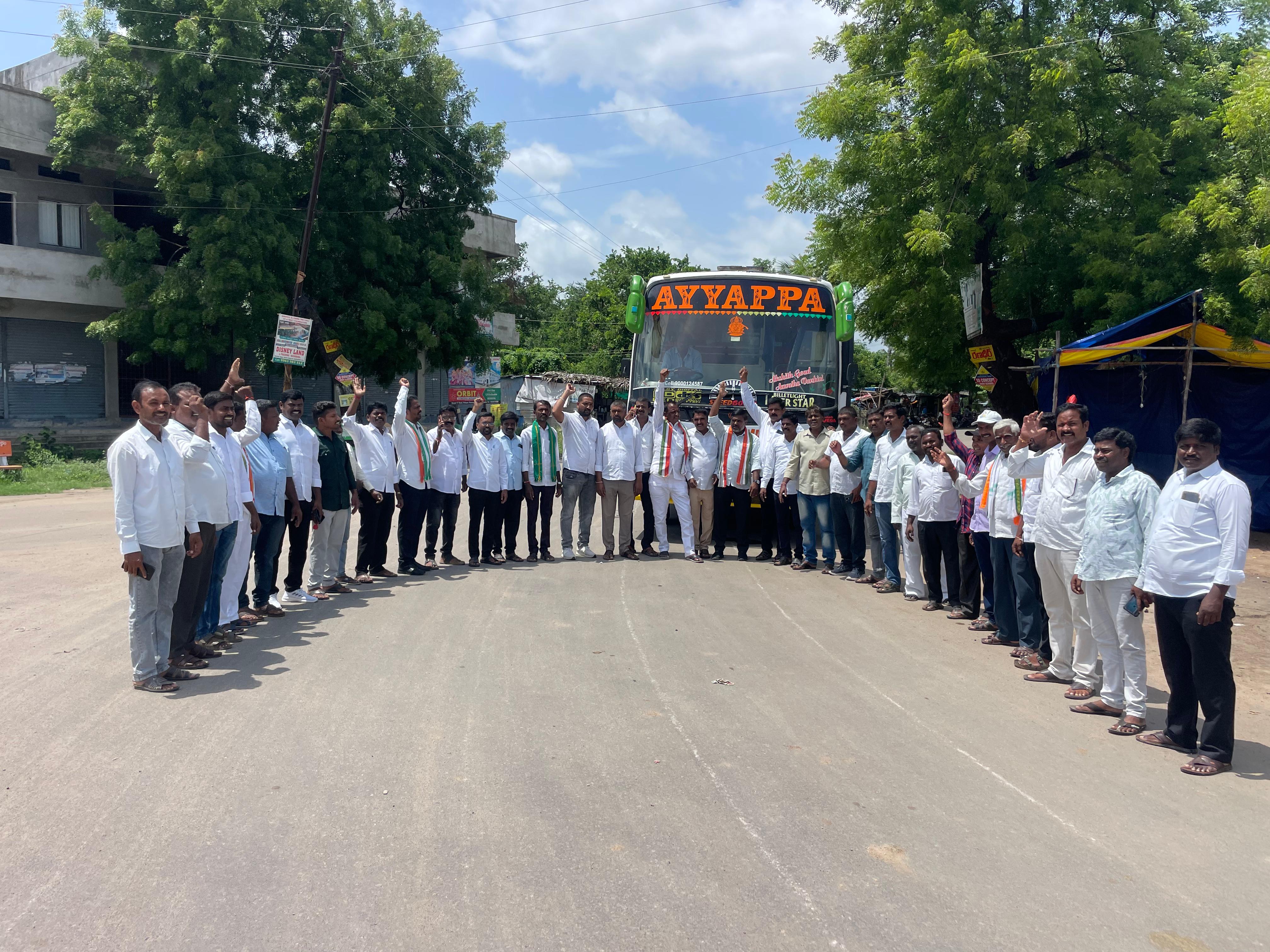 హైదరాబాద్ ఎల్బీ స్టేడియంలో కాంగ్రెస్ పార్టీ గ్రామ అధ్యక్షుల ఆత్మీయ సమ్మేళనం సందర్భంగా నియోజకవర్గ ఇంచార్జ్ వొడితల ప్రణవ్ ఆదేశాల మేరకు మండల పార్టీ అధ్యక్షులు పెద్ది కుమార్ ఆధ్వర్యంలో నేతలు కార్యకర్తలు హైదరాబాద్ కు తరలి వెళ్లారు.