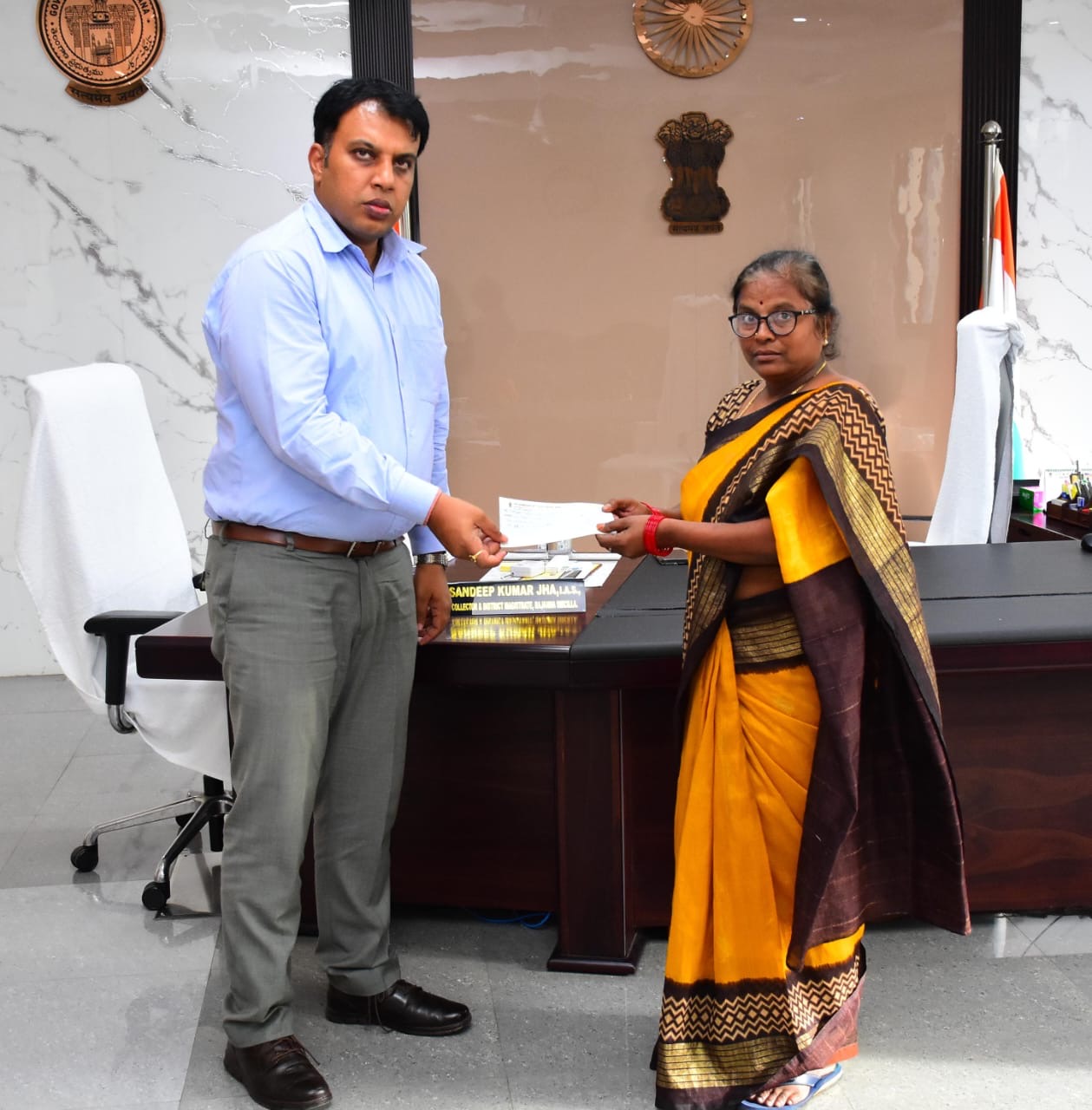 *రూ. 10 లక్షల విలువైన చెక్కు అందించిన కలెక్టర్*