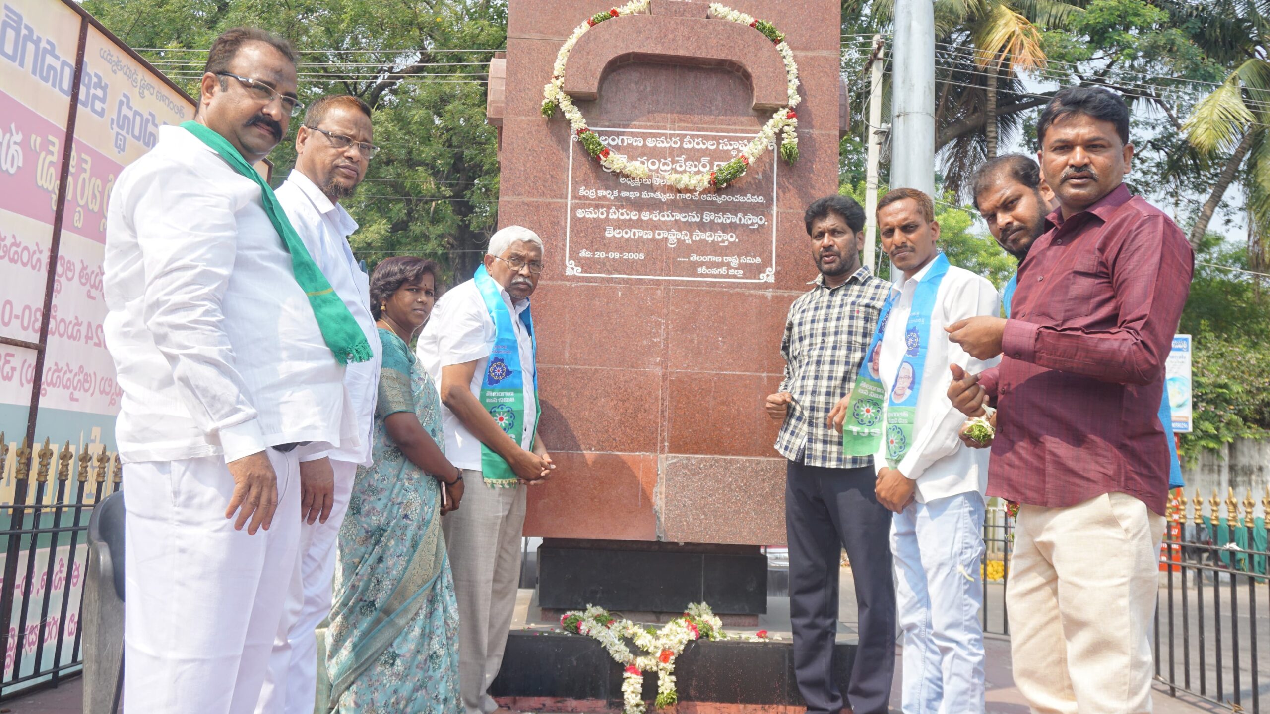 తెలంగాణ జన సమితి పార్టీ 6వ ఆవిర్భావ దినోత్సవం సందర్భంగా కరీంనగర్ జిల్లాకేంద్రంలో అమరవీరుల స్థూపానికి జన సమితి పార్టీ లీడర్లు పూలమాల వేసి నివాళులర్పించారు.