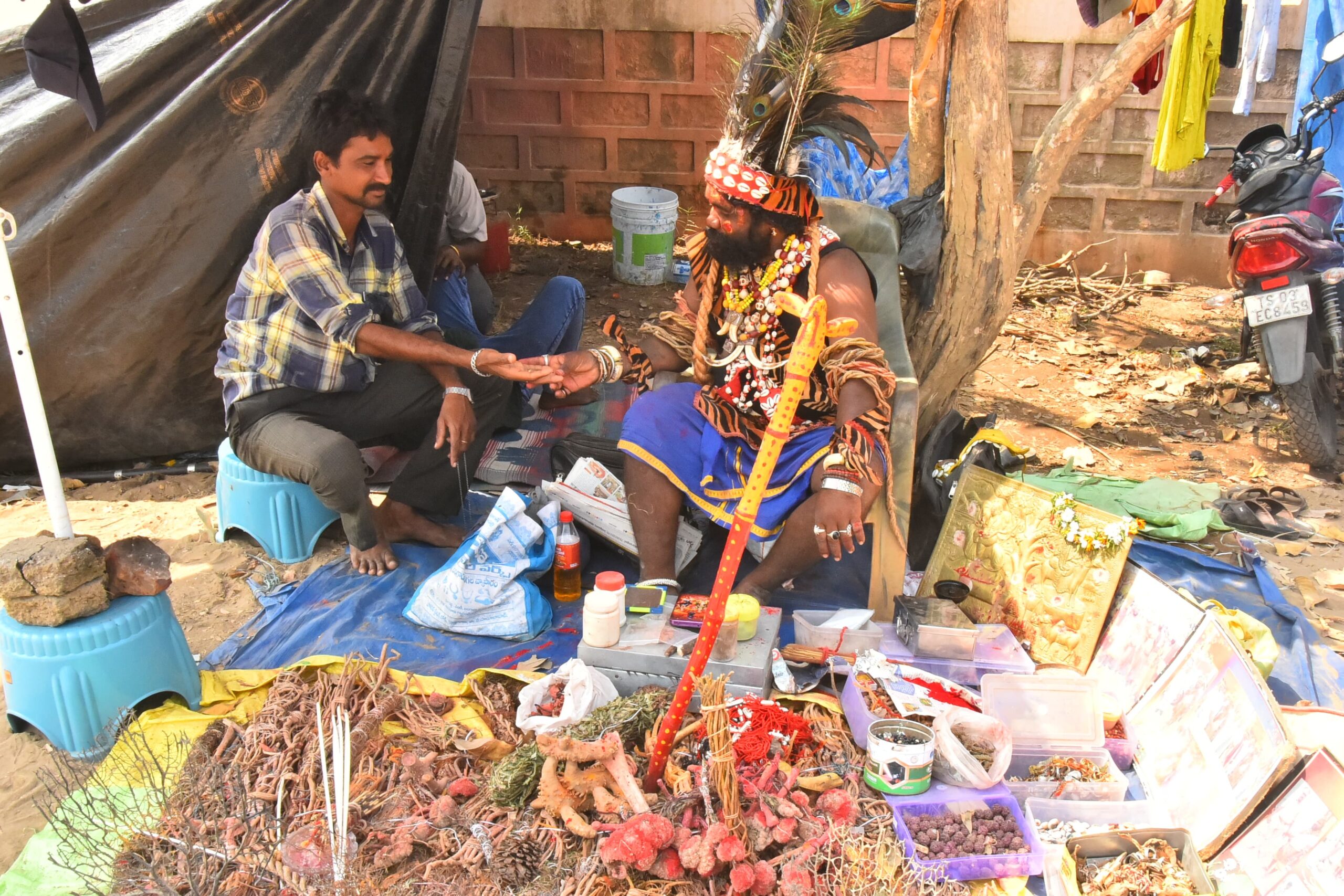 దట్టమైన అడవులలో దొరికే అనేక రకాల వనమూలికల మొక్కలు ,వేర్లు,చెట్ల కొమ్మలను తీసుకు వచ్చి జాతరకు వచ్చే భక్తులకు విక్రయిస్తున్నారు. తాము ఆదివాసిలం అని అడవులలో జీవిస్తూ సమ్మక్క సారలమ్మల ఉపవాస దీక్ష చేపట్టి నిష్ఠతో పూజలు నిర్వహించి అన్ని రోగాలకు సంబంధించిన మూలికలను తమ పూర్వీకుల నుండి తెలుసుకొని నేటికీ అదే కొనసాగిస్తూ ఎంతో మంది ప్రజలకు నయం చేసినట్లు చెబుతున్నారు. భక్తుల నమ్మకానికి అనుగుణంగా వారి వారి రోగాలు నయం అవుతాయని కోయ దొరలు జ్యోతిష్యం తో వారి జాతకం నిజమవుతుందనీ కొందరు భక్తులు తెలిపారు.