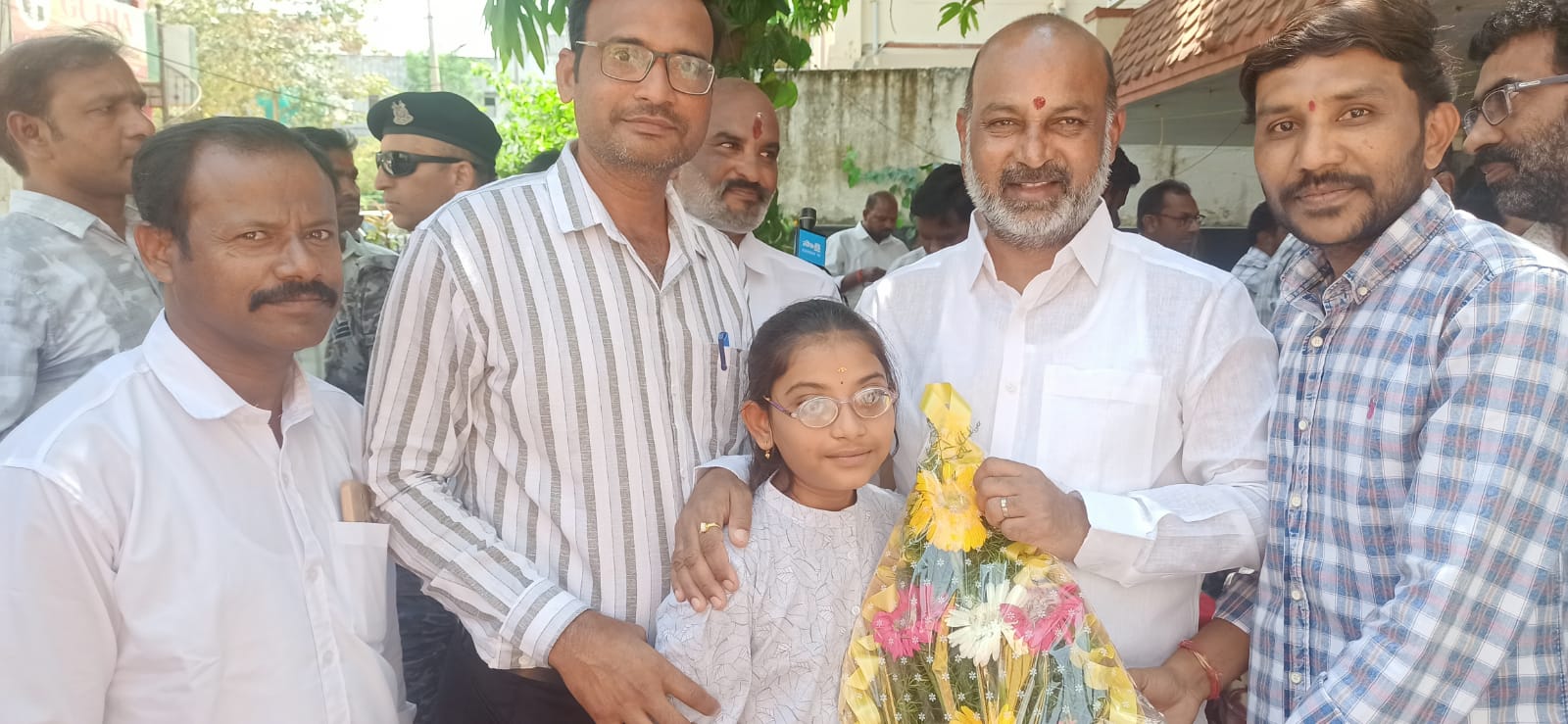 ఎమ్మెల్యే మేడిపల్లి సత్యం పూల బోకేతో అభినందించారు. ఈ సందర్భంగా వారు మాట్లాడుతూ విద్యార్థికి ఎల్లవేళల అవసరమైన మెళకువలు నేర్పిన ఉపాధ్యాయులు పొన్నాల మహేందర్, పిట్టల శ్రీనివాస్ లకు ఆయన అభినందనలు తెలిపారు.