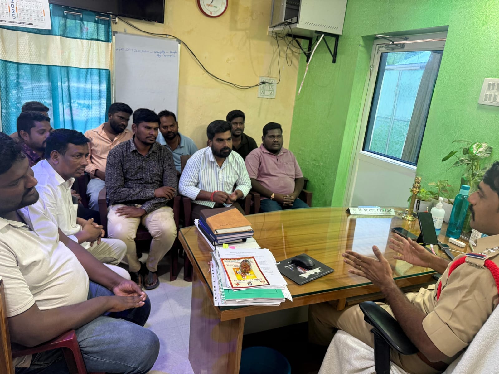 రాజన్న సిరిసిల్ల జిల్లా వేములవాడ పట్టణ పోలీస్ స్టేషన్ పరిధిలోని డిజే యజమా నులతో పోలీసులు సమావేశమయ్యారు. డి.జే యజమానులు పోలీస్ వారి సూచనలు బేఖాతరు చేస్తూ.. నిబంధనలకు విరుద్ధంగా డి.జే నిర్వహించినట్లు అయితే కఠిన చర్యలు తీసుకుంటా మని పోలీసు లు స్పష్టం చేశారు.