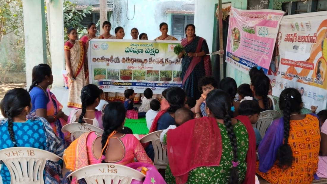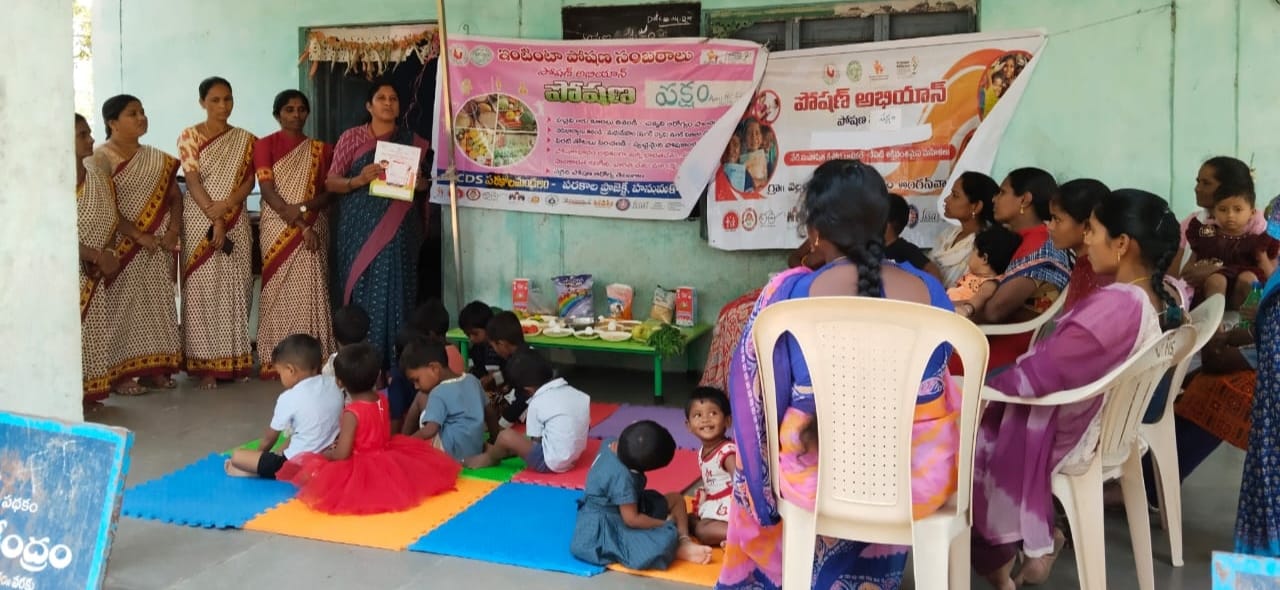పోషకాహార ప్రదర్శన అనంతరం గర్భిణులకు పోషణ సీమంతాలు, ఆరు నెలలు నిండిన పిల్లలకు అన్నప్రాసనలు చేశారు. గ్రోత్ మేళా నిర్వహించి ఆరోగ్యంగా ఉన్న బిడ్డలకి బహుమతులు ప్రదానం చేశారు. అంగన్ వా డీ కేంద్రం ద్వారా ప్రతినెలా పెరుగుదల పర్యవేక్షణ కోసం 0 నుంచి 5 సంవత్సరాల పిల్లల బరువు, ఎత్తు, జబ్బ చుట్టుకొలత తీయడం వాటి ద్వారా పిల్లల పోషణ ఆరోగ్య స్థితిని అంచనా వేస్తున్నట్టు వివరించారు.