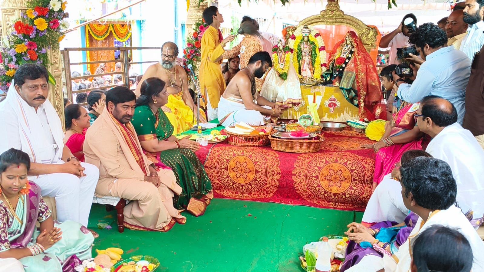 సూర్యాపేట పట్టణంలో శ్రీ వెంకటేశ్వర దేవాలయంలో మాజీ మంత్రి, స్థానిక ఎమ్మెల్యే జగదీశ్ రెడ్డి కుటుంబ సమేతంగా పాల్గొని ప్రత్యేక పూజలు నిర్వహించారు. అనంతరం సీతారామునికి పట్టు వస్త్రములు సమర్పించారు. ఈ సందర్భంగా ఆయన మాట్లాడారు. సీతారాముని పవిత్ర బంధం… భావితరాలు ఆదర్శంగా తీసుకోవాలన్నారు. ఉమ్మడి నల్గొండ జిల్లా ప్రజలకు సీతరాముని ఆశీస్సులు ఉండాలని ఆకాంక్షించారు. అదేవిధంగా టిపిసిసి రాష్ట్ర కార్యదర్శి, తెలంగాణ పర్యటక అభివృద్ధి కార్పొరేషన్ చైర్మన్ పటేల్ రమేష్ రెడ్డి ఉమ్మడి నల్లగొండ జిల్లా ప్రజలకు సకల శుభాలు కలగాలని ఆకాంక్షించారు. ప్రజలందరికీ శ్రీ సీతారాముల అనుగ్రహం లభించాలని ఈ సందర్భంగా అభిలాషించారు.
