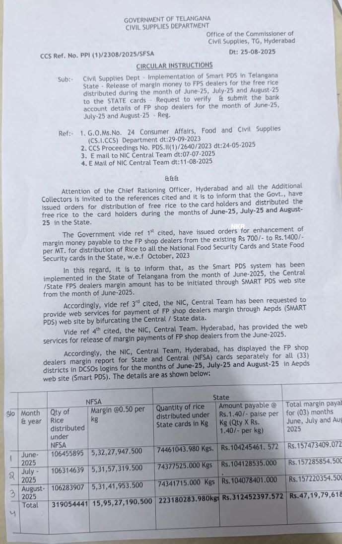 వారంలోపు కమీషన్ ను విడుదల చేయకపోతే సమ్మె చేస్తామని డీలర్లు హెచ్చరించారు. ఈ నేపథ్యంలో ప్రభుత్వం స్పందించి డీలర్ల కమీషన్ రూ. 47.19 కోట్ల జూన్,జూలై, ఆగస్టు నెలలకు సంబంధించిన మొత్తం రిలీజ్ చేస్తూ.. ఉత్తర్వులు జారీ చేసింది.