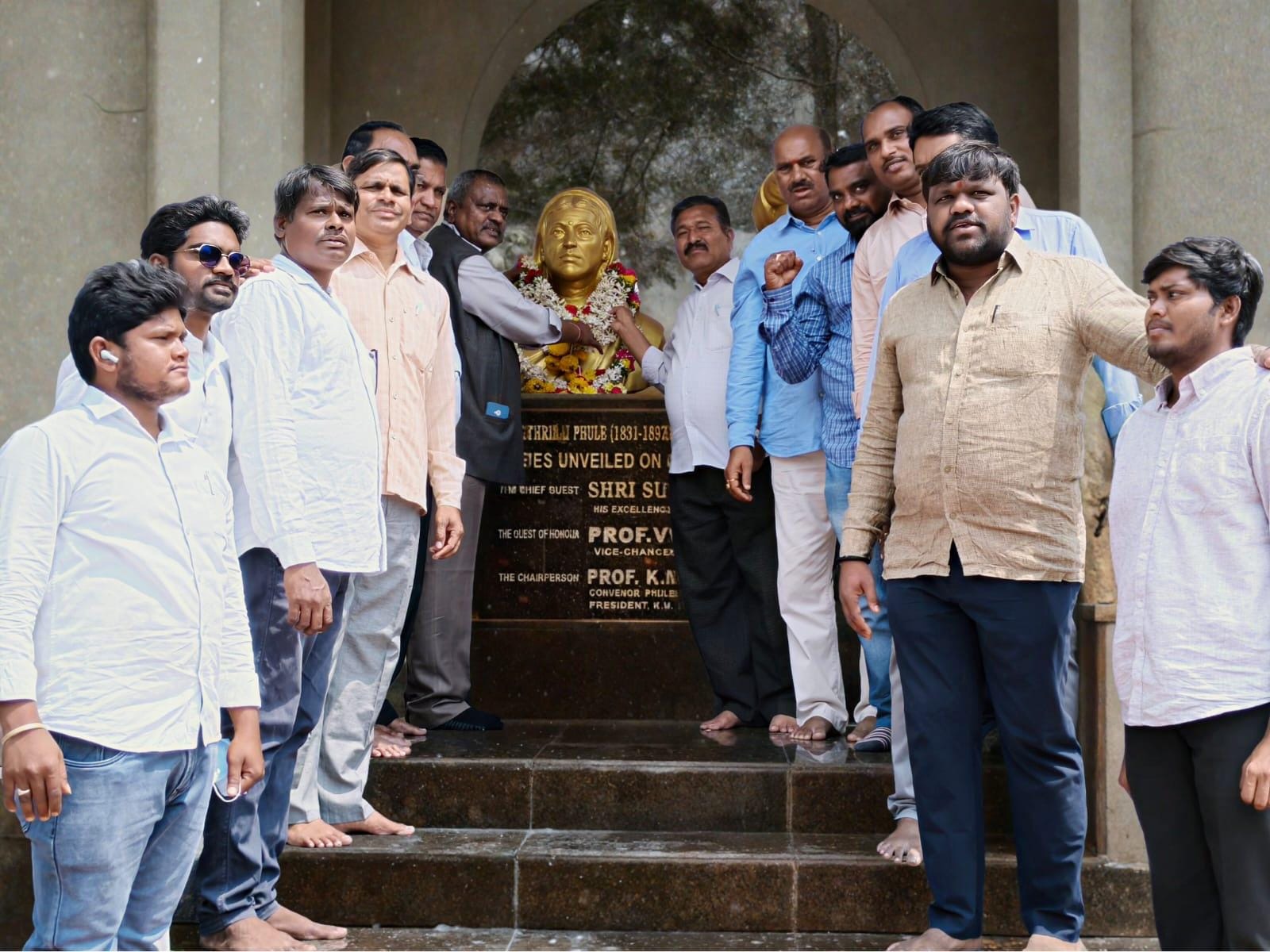 స్త్రీల విముక్తి కోసం అహర్నిశలు శ్రమించిన మహానాయిక, గొప్ప రచయిత్రి సావిత్రిబాయి ఫూలే అని ఫూలే ఆశయ సాధన సమితి (పాస్) రాష్ట్ర వ్యవస్థాపక అధ్యక్షుడు డాక్టర్ సంగని మల్లేశ్వర్ అన్నారు. కాకతీయ విశ్వవిద్యాలయం దూరవిద్యా కేంద్రం ప్రాంగణంలో ఫూలే ఆశయ సాధన సమితి ఆధ్వర్యంలో సావిత్రిబాయి ఫూలే 129వ వర్ధంతి కార్యక్రమాన్ని ఘనంగా నిర్వహించారు. ఈ సందర్భంగా డాక్టర్ సంగని మల్లేశ్వర్ సావిత్రిబాయి ఫూలే విగ్రహానికి పూలమాల వేసి నివాళులర్పించారు. అనంతరం మాట్లాడుతూ.. సమాజంలో అందరూ చదవాలి, సమానత్వంతో జీవించాలనే లక్ష్యంతో పోరాడిన సామాజిక విప్లవ మాతృమూర్తి సావిత్రిబాయి ఫూలే అని పేర్కొన్నారు. స్త్రీల విద్యాభివృద్ధికి ఆమె చేసిన కృషి నేటి తరానికి స్ఫూర్తిదాయకమని తెలిపారు. సావిత్రిబాయి ఫూలే ఆశయాలను ఆదర్శంగా తీసుకుని ప్రతి మహిళ విద్యాభివృద్ధి కోసం కృషి చేయాలని ఆయన పిలుపునిచ్చారు. ఈ కార్యక్రమంలో ఫూలే ఆశయ సాధన సమితి రాష్ట్ర కార్యదర్శి డాక్టర్ చందా మల్లయ్య, రాష్ట్ర ఉపాధ్యక్షులు మెరుగు బాబు యాదవ్, ఆకా రాధాకృష్ణ, జిల్లా ఉపాధ్యక్షుడు శ్రీరాం వీరయ్య, డాక్టర్ వంగాల సుధాకర్, జిల్లా కార్యదర్శి డాక్టర్ ఏ. సంపత్ కుమార్, విజయ్, మంద శ్యాం, గైని రవీందర్ తదితరులు పాల్గొన్నారు.