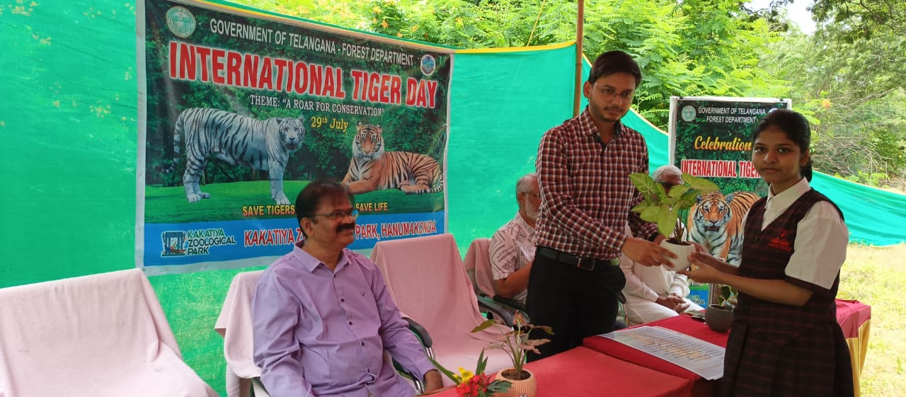 కాకతీయ జులాజికల్ పార్క్ హన్మకొండ నందు అంతర్జాతీయ పులుల దినోత్సవాన్ని బి.మయూరి, ఫారెస్ట్ రేంజ్ అధికారి అధ్యక్షతన, ఓరుగల్లు వైల్డ్ లైఫ్ సొసైటీ ఎన్.జీ.ఓ. సహకారంతో మంగళవారం ఘనంగా నిర్వహించారు. కార్యక్రమంలో అనూజ్ అగర్వాల్ ఐ.ఎఫ్.ఎస్, ఇంఛార్జి జిల్లా అటవీశాఖ అధికారి, హనుమకొండ, జనగాం పాల్గొని, పులులు సంఖ్య అంతరించిపోతుందని వాటినీ సంరక్షించే బాధ్యత ప్రతి ఒక్కరిపై ఉందని తెలియజేశారు.