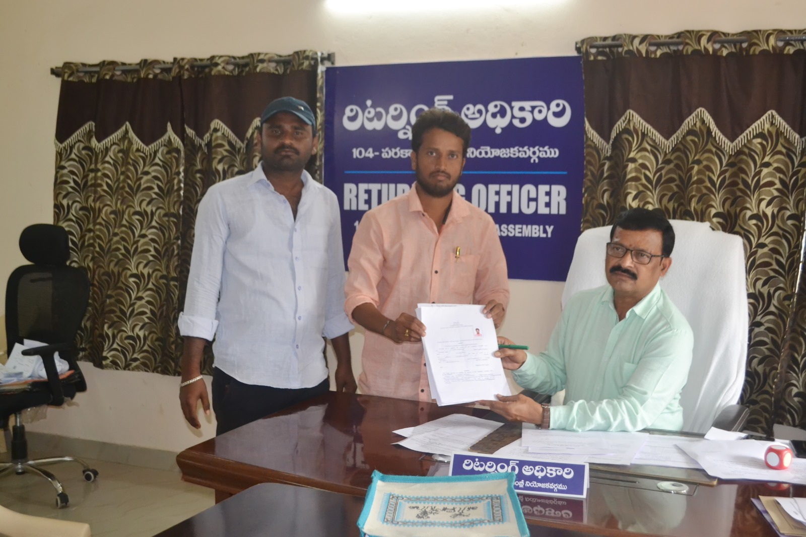 నిరుద్యోగులతో ఏర్పాటైన ‘విద్యార్థుల రాజకీయ పార్టీ’ తరఫున పరకాల ఎమ్మెల్యే అభ్యర్థిగా హన్మకొండ జిల్లా ధర్మసాగర్ మండలం దేవునూరు గ్రామానికి చెందిన యువకుడు సంగెకారి యువరాజ్ నామినేషన్ వేశారు. పరకాల నియోజకవర్గ రిటర్నింగ్ అధికారి(ఆర్ వో)కు బుధవారం ఒక సెట్ నామినేషన్ పత్రాలు సమర్పించారు. నామినేషన్ దాఖలు చేసిన అనంతరం ఎమ్మెల్యే అభ్యర్థి సంగెకారి యువరాజ్ మాట్లాడుతూ విద్యావంతుడినైన తాను నిరుద్యోగుల తరఫున గళం వినిపించేందుకు ఎమ్మెల్యేగా పోటీ చేస్తున్నట్లు తెలిపారు.
